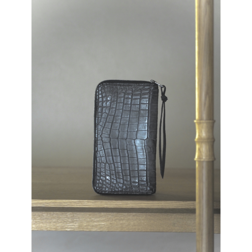 ※価格はお問い合わせください。 Model : Rossetti “ロッセッティ” Material : Crocodile ×Calf leather Color : Asphalt Size: H120mm,W200mm,D25mm
