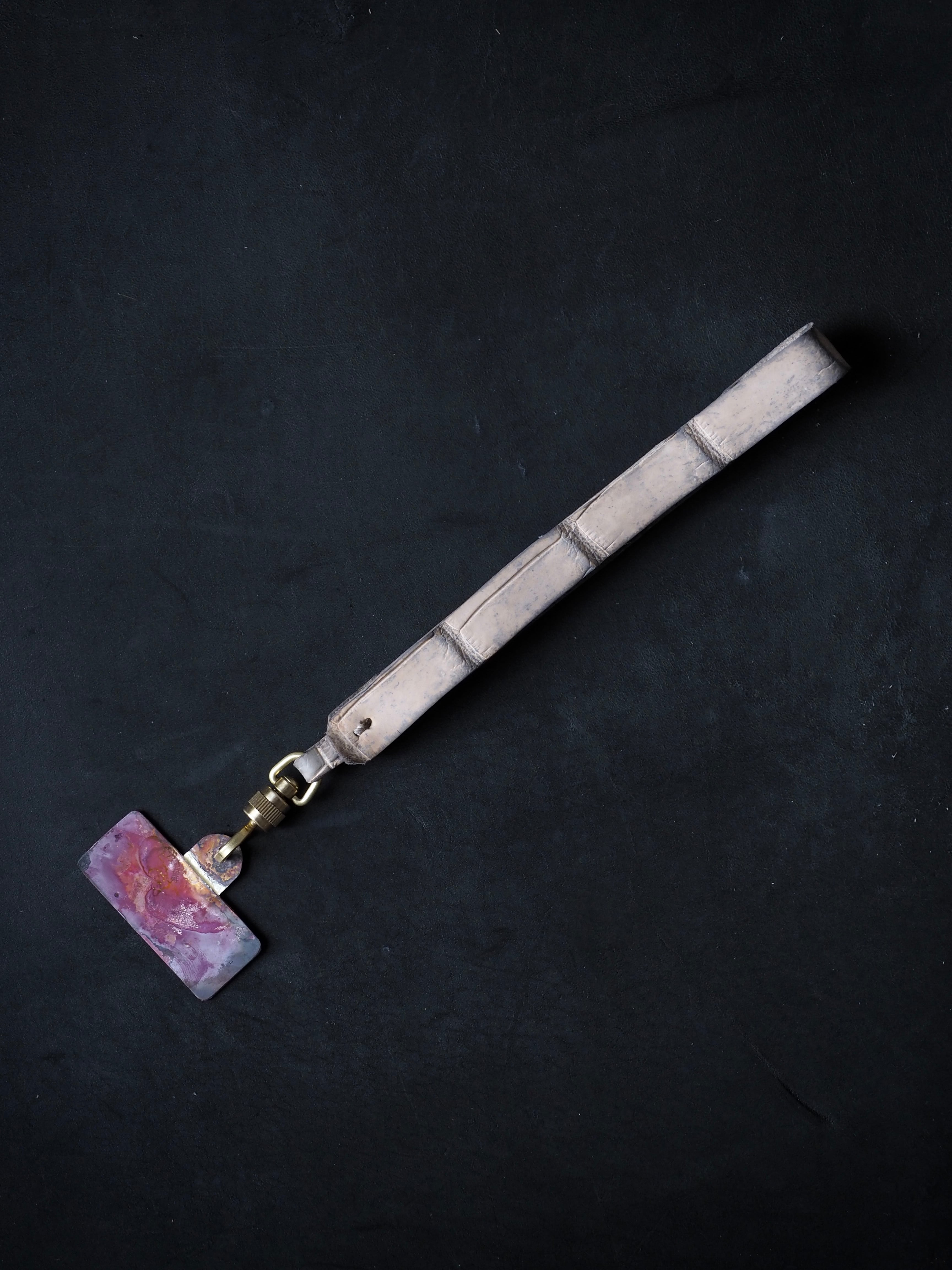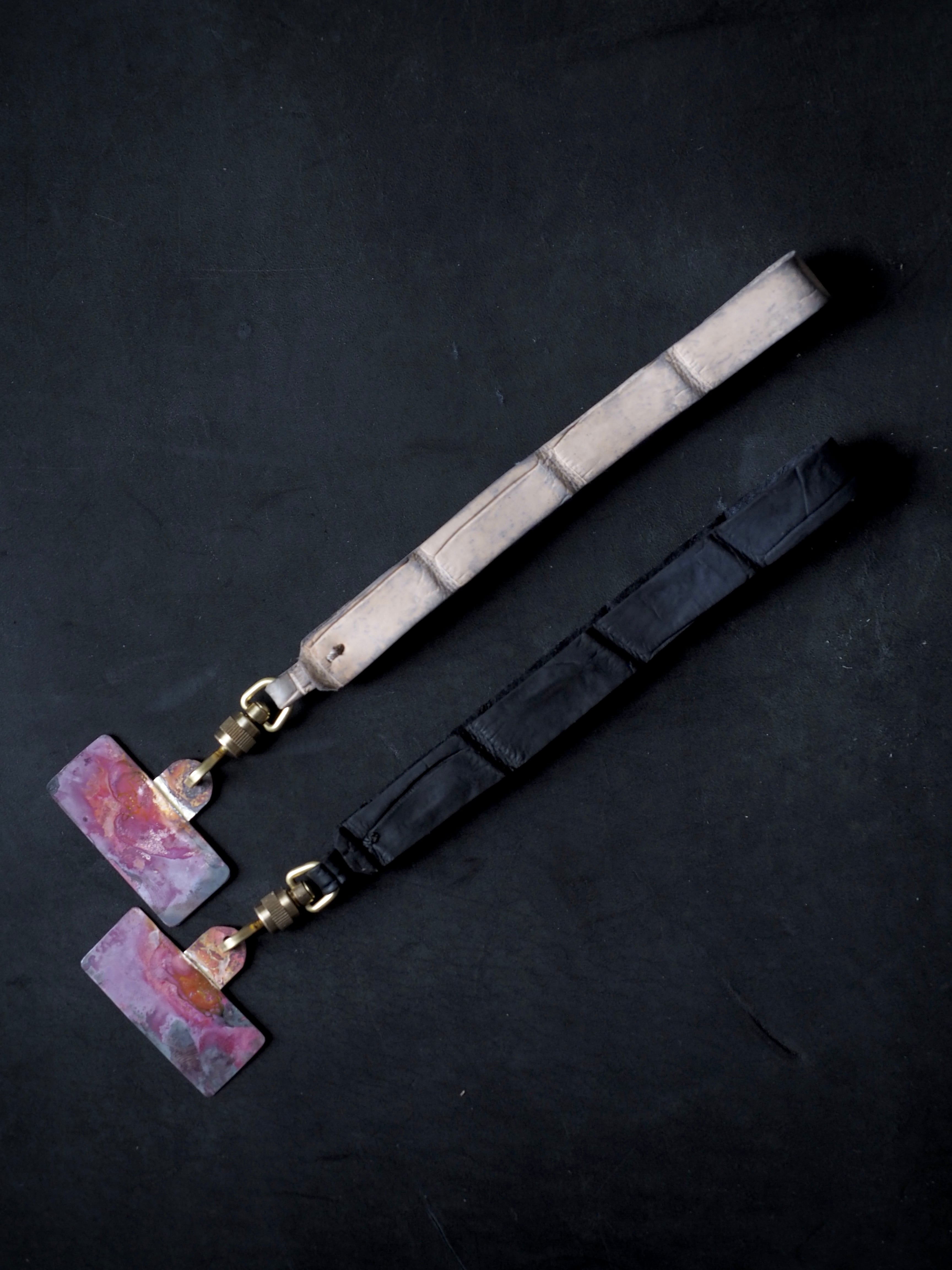 ベジタブルタンニン鞣しのクロコダイルに、ヴィンテージ加工を施し、叩き上げた銅素材と組み合わせました。